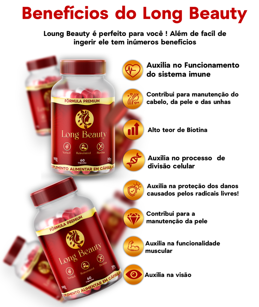 Biotina, Colágeno verisol, Metilsulfonilmetano, Resveratrol, Ácido Hialurônico, Metionina, peptídeos bioativos Cisteína, Selênio, Zinco, Cromo e + 15 vitaminas e Minerais